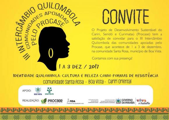 O evento será realizado na comunidade Santa Rosa, zona rural de Boa Vista, onde há uma comunidade quilombola reconhecida. Também participarão do intercâmbio as comunidades de Serra do Abreu, de Nova Palmeira; Rua Preta, de Camalaú; Comunidade do Talhado, de Santa Luzia; Comunidade Pitombeira, de Várzea; Cacimba Nova, de São João do Tigre; Cantinho, de Serra Branca, Comunidades Areias de Verão, Vila Teimosa e Suçuarana, de Livramento.