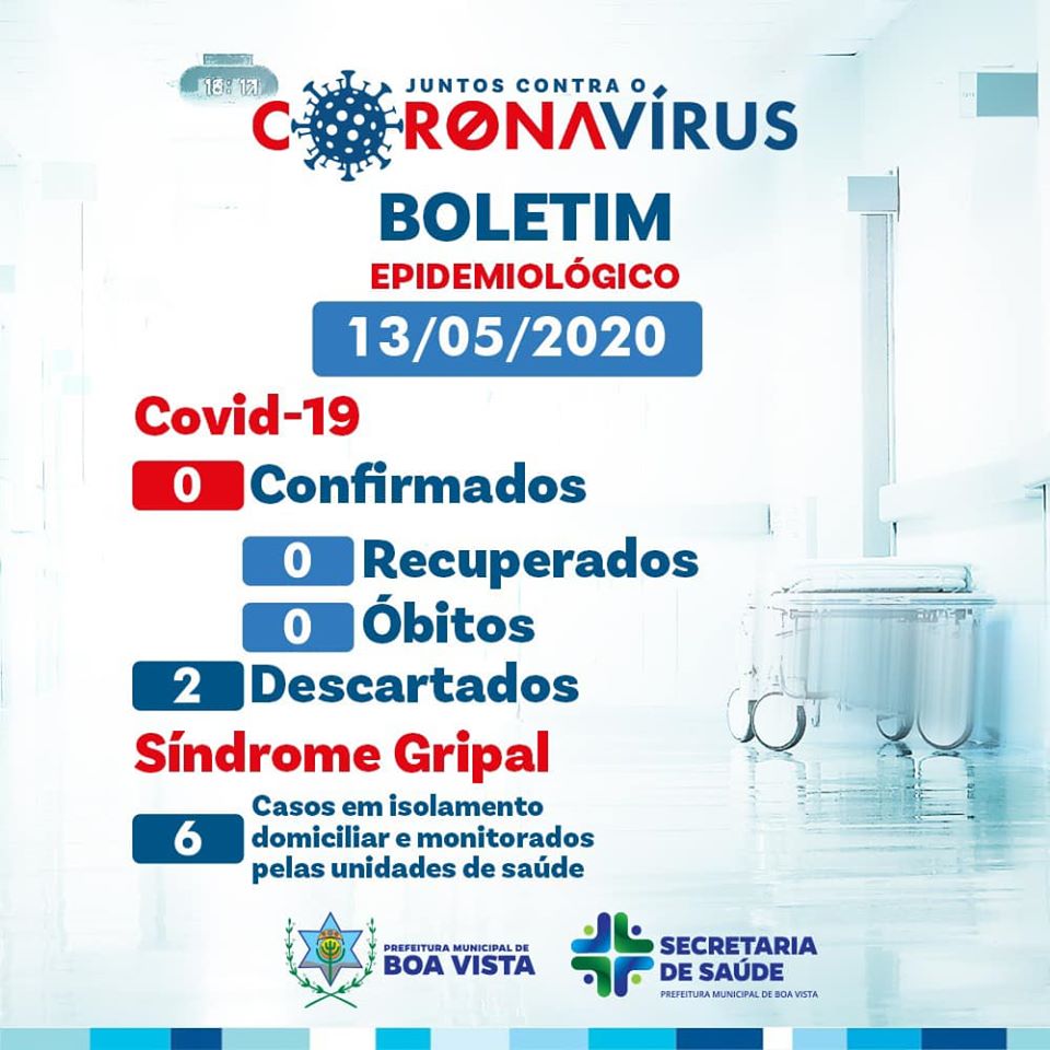 Boletim epidemiológico diário atualizado do nosso município. Boa Vista segue sem casos confirmados de coronavírus. Se mantenha informado sempre através dos canais oficiais da Prefeitura, seja via Redes Sociais ou por meio de nossa Ouvidoria Municipal de Saúde (ouvidoria.sus@boavista.pb.gov.br), ou ainda através dos canais do Ministério da Saúde e Secretaria Estadual de Saúde.