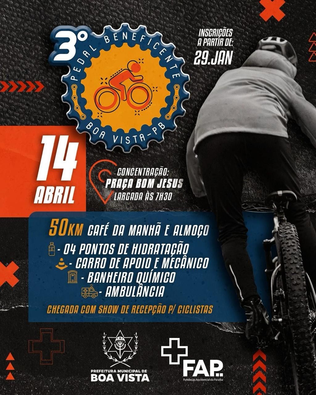 O prefeito de Boa Vista, André Gomes, anunciou nesta sexta-feira, 19, a data da 3ª edição do Pedal Beneficente de Boa Vista, iniciativa que busca promover a arrecadação de recursos para o Hospital da FAP, unidade que é referência no tratamento do câncer para dezenas de municípios da Paraíba.