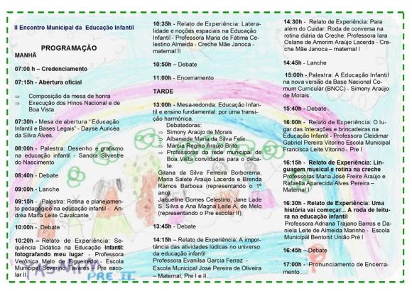 Pensando a educação infantil e partir dessa ótica, dia 24 de agosto de 2017, a Secretaria de Educação do município de Boa Vista - PB realiza o "II Encontro Municipal da Educação Infantil: diálogos sobre a educação infantil"