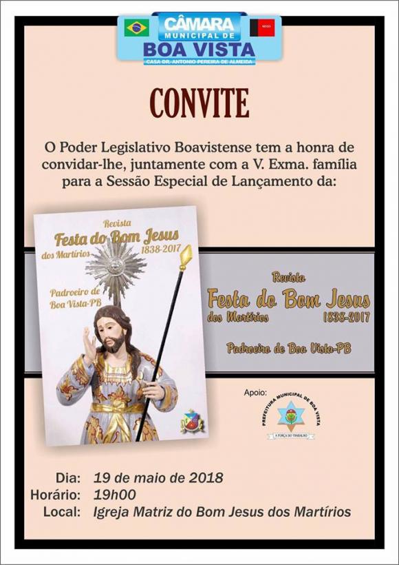 em sessão especial da Câmara Municipal de Boa Vista a ser realizada na Igreja