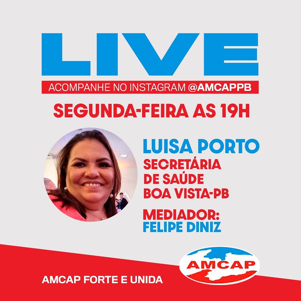 A Associação dos municípios do Cariri e Agreste da Paraíba (AMCAP), inicia nesta segunda-feira (01), por meio do seu perfil no Instagram, uma série de lives com a presença dos secretários de saúde das cidades da região para tratar das medidas e ações que estão sendo desenvolvidas no combate ao novo coronavírus.