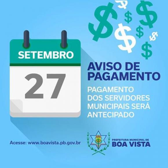 Bom dia pessoal!Nas primeiras horas desta quarta-feira (27) já estará disponível o salário do funcionalismo público municipal, mantendo o nosso compromisso de pagar dentro do mês trabalhado, todos os funcionários da ativa, aposentados e pensionistas.#Mês_de_setembro_de_2017