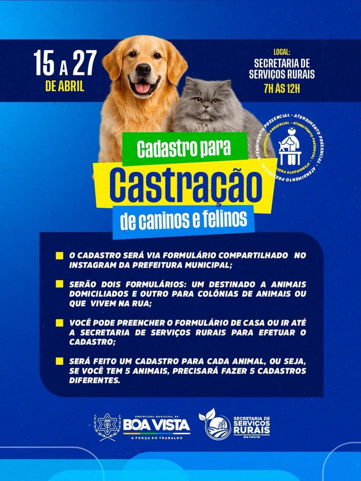 cadastro para o programa de castração de animais domésticos e em situação de